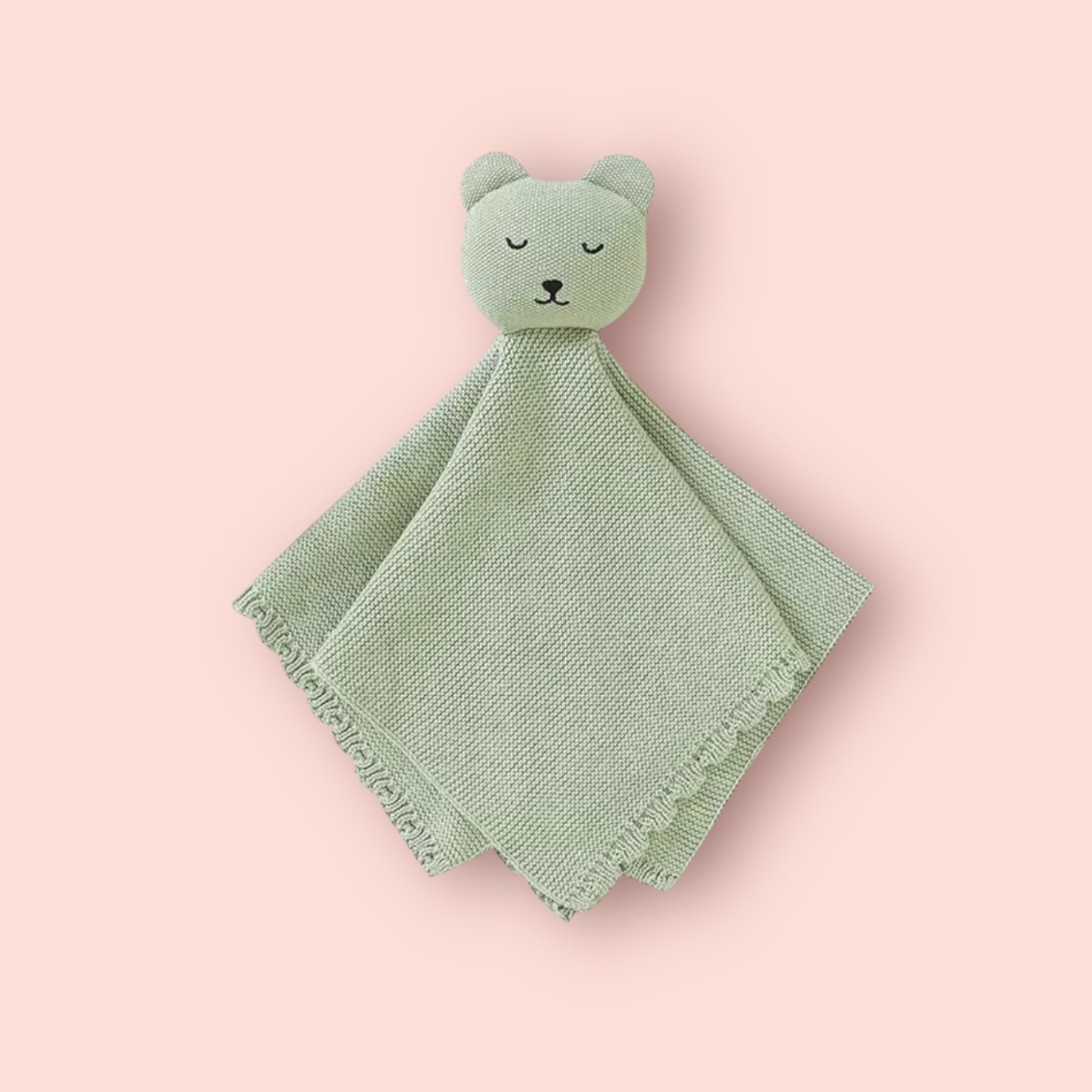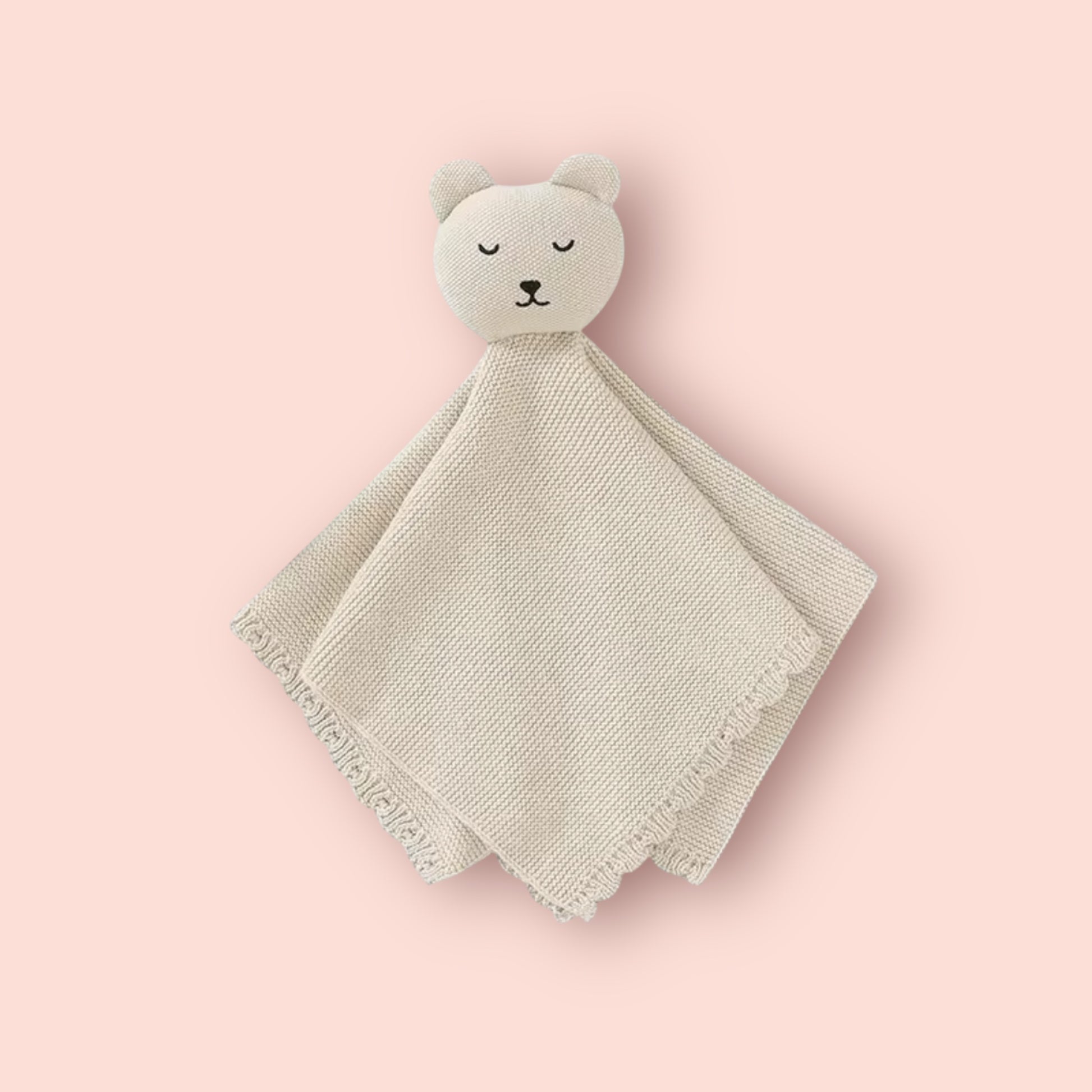 Make snuggle time extra soothing with our baby bear loveys. Knitted with cozy cotton and features sweet, embroidered details, this is perfect for snuggling on the go. These security blankets are a gift that any little one is sure to love.