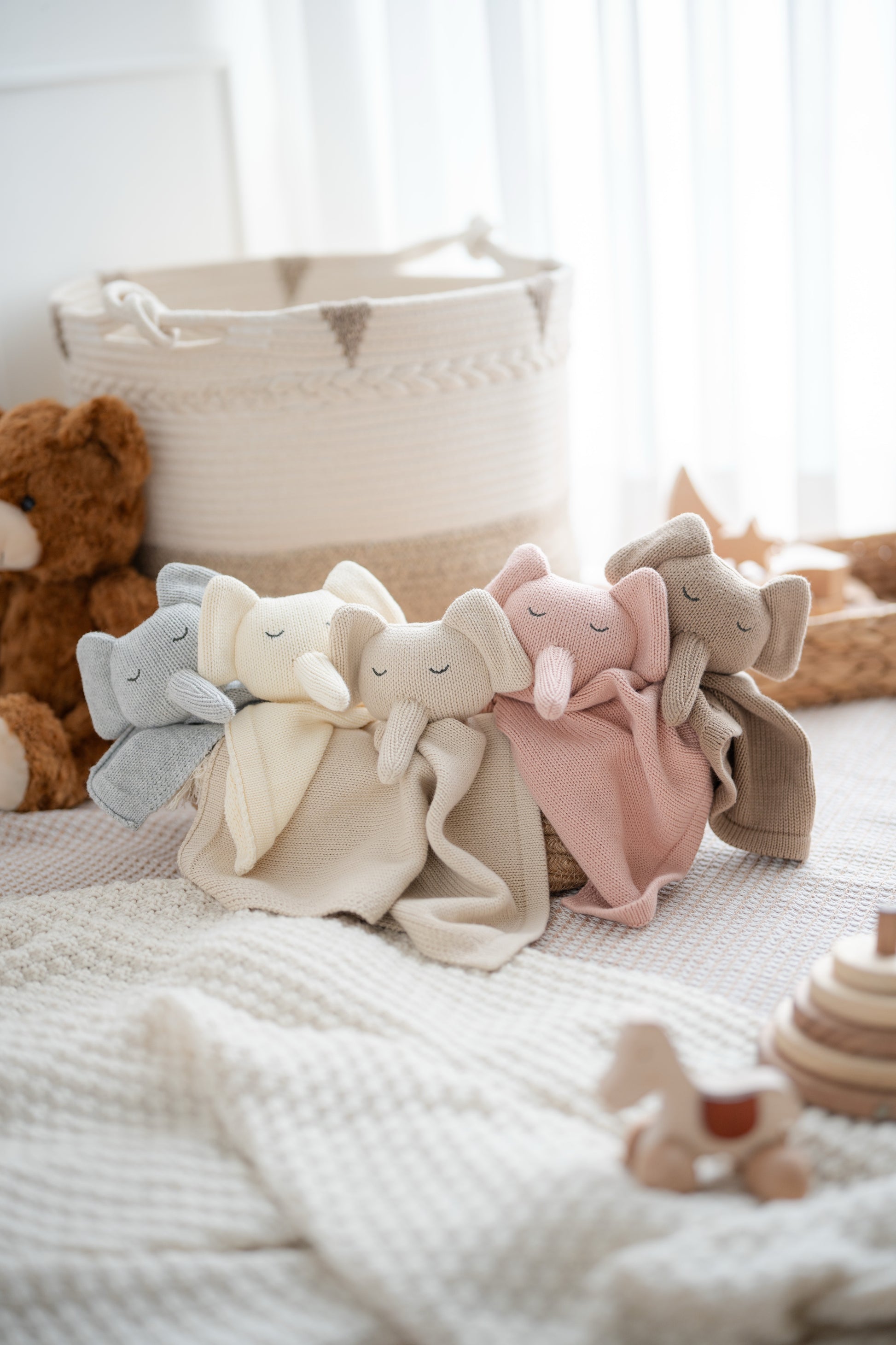 Make snuggle time extra soothing with our sweet elephant loveys. Knitted with cozy cotton and features sweet, embroidered details, this is perfect for snuggling on the go. These security blankets are a gift that any little one is sure to love.